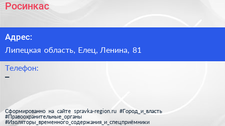 Росинкас по адресу Липецкая область, Елец, Ленина, 81 в дальнейшем Организация, размещена в следующих категориях:
