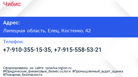 Чибис по адресу Липецкая область, Елец, Костенко, 42 в дальнейшем Организация, размещена в следующих категориях: