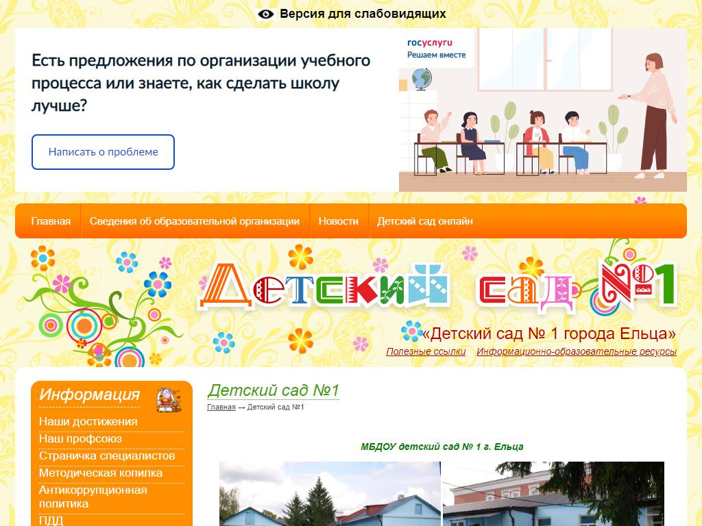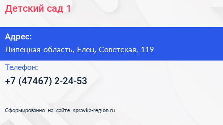 Детский сад №1 по адресу Липецкая область, Елец, Советская, 119 в дальнейшем Организация, размещена в следующих категориях: