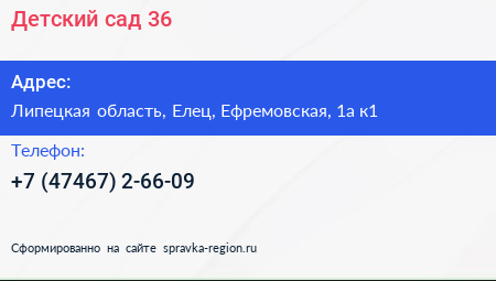 Детский сад №36 по адресу Липецкая область, Елец, Ефремовская, 1а к1 в дальнейшем Организация, размещена в следующих категориях: