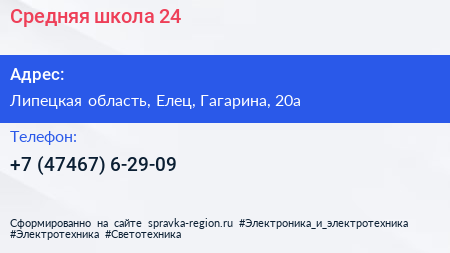 Средняя школа №24 по адресу Липецкая область, Елец, Гагарина, 20а в дальнейшем Организация, размещена в следующих категориях: