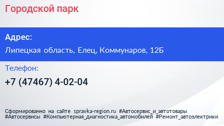 Городской парк по адресу Липецкая область, Елец, Коммунаров, 12Б в дальнейшем Организация, размещена в следующих категориях: