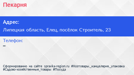 Пекарня по адресу Липецкая область, Елец, посёлок Строитель, 23 в дальнейшем Организация, размещена в следующих категориях: