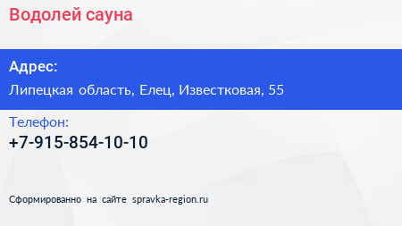 Водолей, сауна по адресу Липецкая область, Елец, Известковая, 55 в дальнейшем Организация, размещена в следующих категориях: