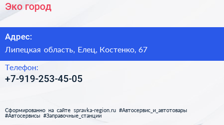 Эко город по адресу Липецкая область, Елец, Костенко, 67 в дальнейшем Организация, размещена в следующих категориях: