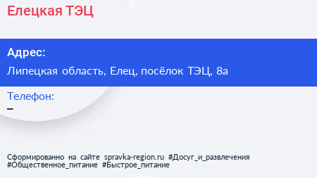 Елецкая ТЭЦ по адресу Липецкая область, Елец, посёлок ТЭЦ, 8а в дальнейшем Организация, размещена в следующих категориях: