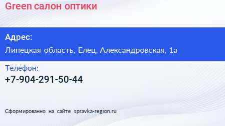 Green, салон оптики по адресу Липецкая область, Елец, Александровская, 1а в дальнейшем Организация, размещена в следующих категориях: