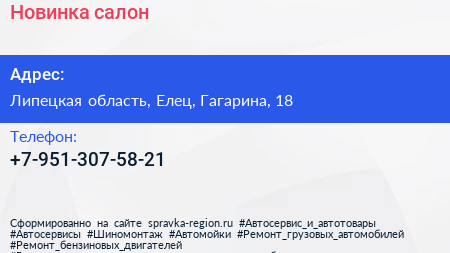 Новинка, салон по адресу Липецкая область, Елец, Гагарина, 18 в дальнейшем Организация, размещена в следующих категориях: