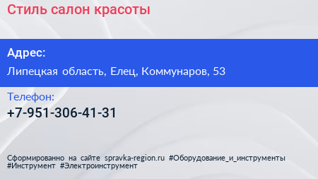 Стиль, салон красоты по адресу Липецкая область, Елец, Коммунаров, 53 в дальнейшем Организация, размещена в следующих категориях: