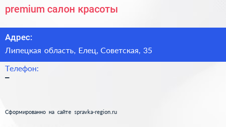 premium, салон красоты по адресу Липецкая область, Елец, Советская, 35 в дальнейшем Организация, размещена в следующих категориях: