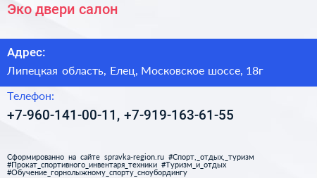 Эко-двери, салон по адресу Липецкая область, Елец, Московское шоссе, 18г в дальнейшем Организация, размещена в следующих категориях: