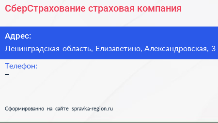 СберСтрахование, страховая компания по адресу Ленинградская область, Елизаветино, Александровская, 3 в дальнейшем Организация, размещена в следующих категориях: