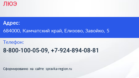 ЛЮЭ по адресу 684000, Камчатский край, Елизово, Завойко, 5 в дальнейшем Организация, размещена в следующих категориях: