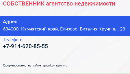 СОБСТВЕННИК, агентство недвижимости по адресу 684000, Камчатский край, Елизово, Виталия Кручины, 28 в дальнейшем Организация, размещена в следующих категориях: