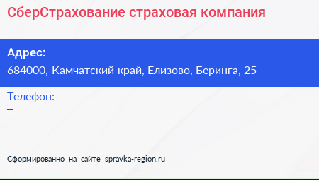 СберСтрахование, страховая компания по адресу 684000, Камчатский край, Елизово, Беринга, 25 в дальнейшем Организация, размещена в следующих категориях: