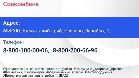 Совкомбанк по адресу 684000, Камчатский край, Елизово, Завойко, 1 в дальнейшем Организация, размещена в следующих категориях: