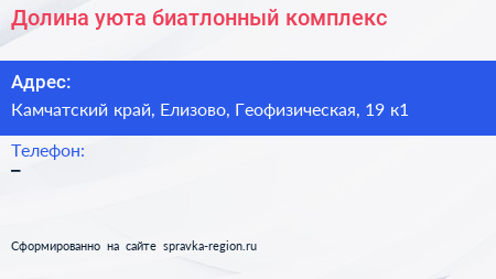 Долина уюта, биатлонный комплекс по адресу Камчатский край, Елизово, Геофизическая, 19 к1 в дальнейшем Организация, размещена в следующих категориях: