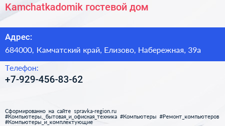Kamchatkadomik, гостевой дом по адресу 684000, Камчатский край, Елизово, Набережная, 39а в дальнейшем Организация, размещена в следующих категориях: