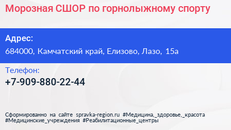 Морозная, СШОР по горнолыжному спорту по адресу 684000, Камчатский край, Елизово, Лазо, 15а в дальнейшем Организация, размещена в следующих категориях: