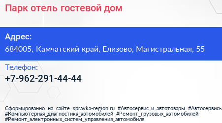 Парк-отель, гостевой дом по адресу 684005, Камчатский край, Елизово, Магистральная, 55 в дальнейшем Организация, размещена в следующих категориях: