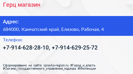 Герц, магазин по адресу 684000, Камчатский край, Елизово, Рабочая, 4 в дальнейшем Организация, размещена в следующих категориях:
