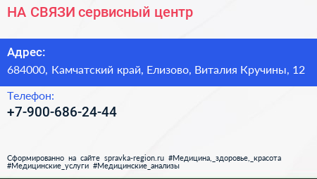 НА СВЯЗИ, сервисный центр по адресу 684000, Камчатский край, Елизово, Виталия Кручины, 12 в дальнейшем Организация, размещена в следующих категориях: