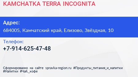 KAMCHATKA TERRA INCOGNITA по адресу 684005, Камчатский край, Елизово, Звёздная, 10 в дальнейшем Организация, размещена в следующих категориях: