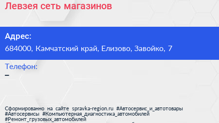 Адрес: Камчатский край, Елизово, Ленина, 5а