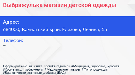 Выбражулька, магазин детской одежды по адресу 684000, Камчатский край, Елизово, Ленина, 5а в дальнейшем Организация, размещена в следующих категориях: