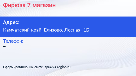 Фирюза-7, магазин по адресу Камчатский край, Елизово, Лесная, 1Б в дальнейшем Организация, размещена в следующих категориях: