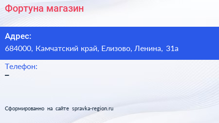 Фортуна, магазин по адресу 684000, Камчатский край, Елизово, Ленина, 31а в дальнейшем Организация, размещена в следующих категориях: