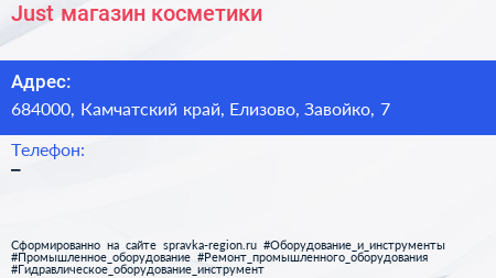 Just, магазин косметики по адресу 684000, Камчатский край, Елизово, Завойко, 7 в дальнейшем Организация, размещена в следующих категориях: