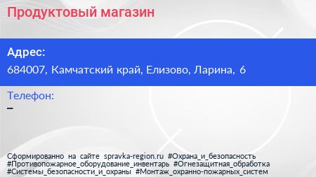 Продуктовый магазин по адресу 684007, Камчатский край, Елизово, Ларина, 6 в дальнейшем Организация, размещена в следующих категориях: