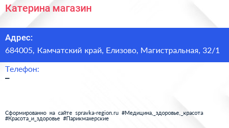 Катерина, магазин по адресу 684005, Камчатский край, Елизово, Магистральная, 32/1 в дальнейшем Организация, размещена в следующих категориях: