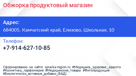 Обжорка, продуктовый магазин по адресу 684005, Камчатский край, Елизово, Школьная, 10 в дальнейшем Организация, размещена в следующих категориях: