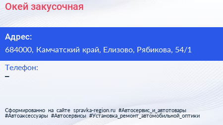 Окей, закусочная по адресу 684000, Камчатский край, Елизово, Рябикова, 54/1 в дальнейшем Организация, размещена в следующих категориях:
