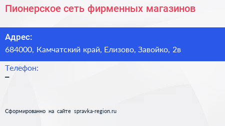 Пионерское, сеть фирменных магазинов по адресу 684000, Камчатский край, Елизово, Завойко, 2в в дальнейшем Организация, размещена в следующих категориях:
