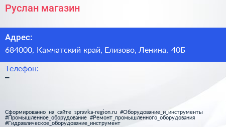 Руслан, магазин по адресу 684000, Камчатский край, Елизово, Ленина, 40Б в дальнейшем Организация, размещена в следующих категориях: