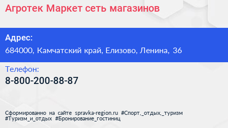 Агротек Маркет, сеть магазинов по адресу 684000, Камчатский край, Елизово, Ленина, 36 в дальнейшем Организация, размещена в следующих категориях: