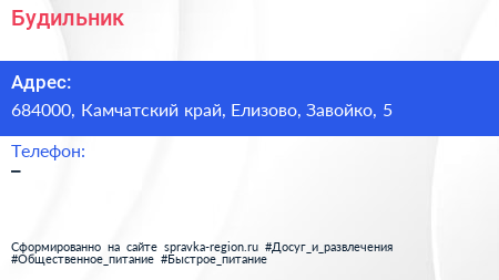 Будильник по адресу 684000, Камчатский край, Елизово, Завойко, 5 в дальнейшем Организация, размещена в следующих категориях: