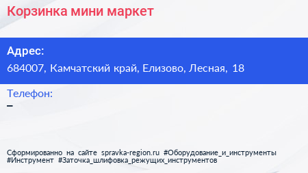 Корзинка, мини-маркет по адресу 684007, Камчатский край, Елизово, Лесная, 18 в дальнейшем Организация, размещена в следующих категориях: