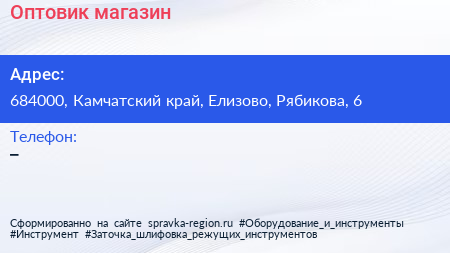 Оптовик, магазин по адресу 684000, Камчатский край, Елизово, Рябикова, 6 в дальнейшем Организация, размещена в следующих категориях: