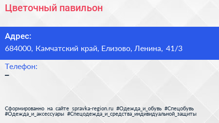 Цветочный павильон по адресу 684000, Камчатский край, Елизово, Ленина, 41/3 в дальнейшем Организация, размещена в следующих категориях: