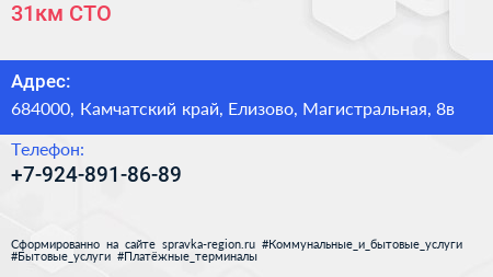 31км, СТО по адресу 684000, Камчатский край, Елизово, Магистральная, 8в в дальнейшем Организация, размещена в следующих категориях: