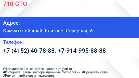 710, СТО по адресу Камчатский край, Елизово, Северная, 6 в дальнейшем Организация, размещена в следующих категориях: