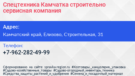 Спецтехника Камчатка, строительно-сервисная компания по адресу Камчатский край, Елизово, Строительная, 31 в дальнейшем Организация, размещена в следующих категориях: