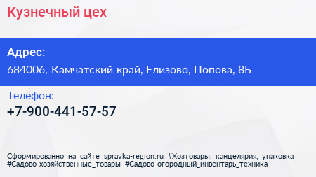 Кузнечный цех по адресу 684006, Камчатский край, Елизово, Попова, 8Б в дальнейшем Организация, размещена в следующих категориях: