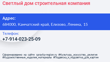 Светлый дом, строительная компания по адресу 684000, Камчатский край, Елизово, Ленина, 15 в дальнейшем Организация, размещена в следующих категориях: