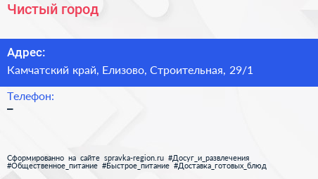 Чистый город по адресу Камчатский край, Елизово, Строительная, 29/1 в дальнейшем Организация, размещена в следующих категориях: