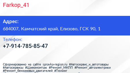 Farkop_41 по адресу 684007, Камчатский край, Елизово, ГСК 90, 1 в дальнейшем Организация, размещена в следующих категориях: